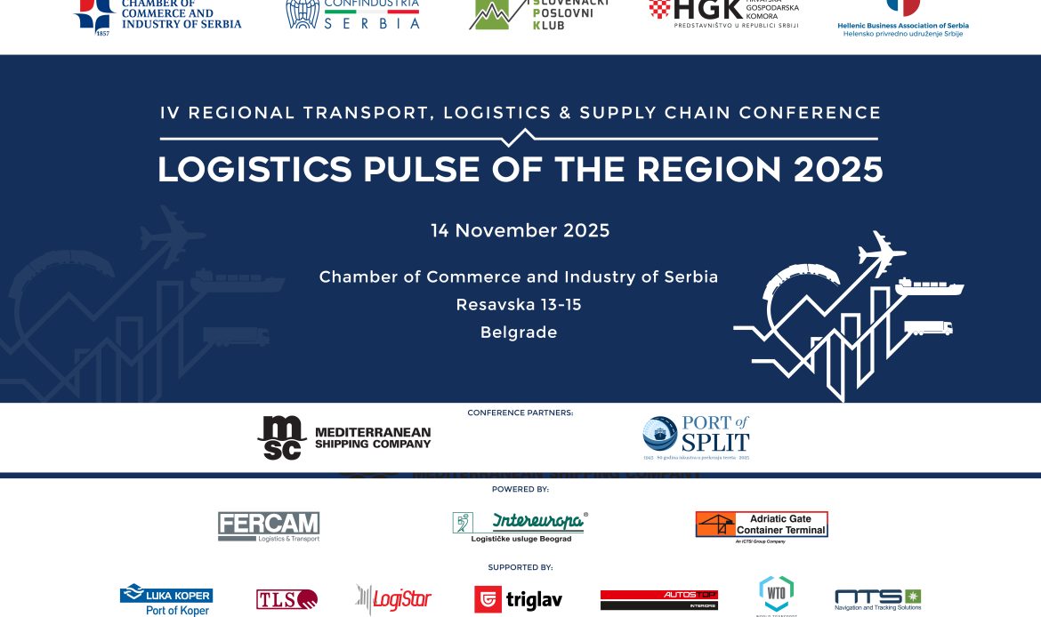 03/11/2025 Događaji,Vesti iz Konfindustrije Srbija Pridružite nam se na IV Regionalnoj konferenciji o transportu, logistici i lancima snabdevanja “Logistics Pulse of the Region 2025”, 14. novembra u PKS