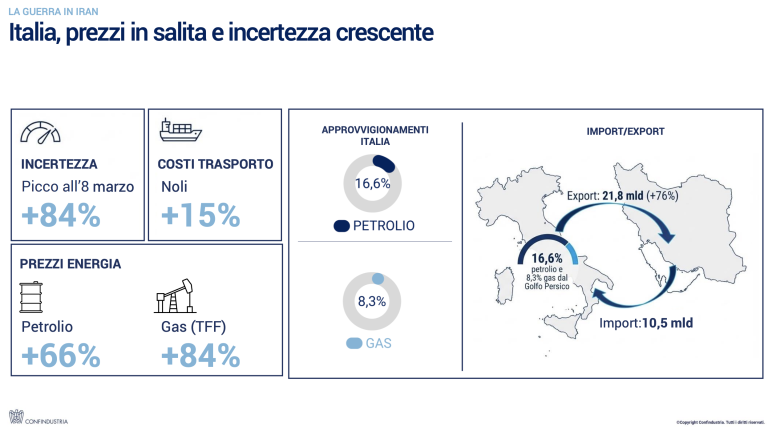 Predsednik udruženja Confindustria, Emanuele Orsini, istakao je da su najveći problem za Italiju naglo rastući troškovi energije za kompanije, jer je cena porasla sa 106 na 170 evra po megavat-satu (MWh). On je pozvao na zajednički odgovor na nivou Evropske unije, uključujući zajedničko zaduživanje i jedinstveno evropsko energetsko tržište.