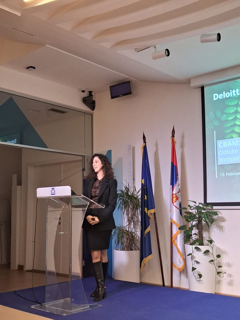U nastavku, Jelena Perović, ESG konsultant u kompaniji Deloitte, predstavila je najnovije regulatorne novine, uključujući odluke Evropske komisije iz decembra 2025. godine, kao i konkretne izazove i prilike koje CBAM donosi kompanijama iz regiona. Kako je istaknuto, CBAM ulazi u novu fazu koja značajno povećava zahteve za prikupljanje podataka, verifikaciju ugrađenih emisija i saradnju duž celog lanca snabdevanja, pri čemu operateri iz zemalja van EU postaju ključni akteri sistema. Posebno je naglašeno da će proširenje CBAM-a značajno proširiti uticaj regulative i van tradicionalno energetski intenzivnih industrija, uz procenu da bi oko 3.900 novih malih i srednjih preduzeća moglo biti direktno obuhvaćeno novim pravilima.