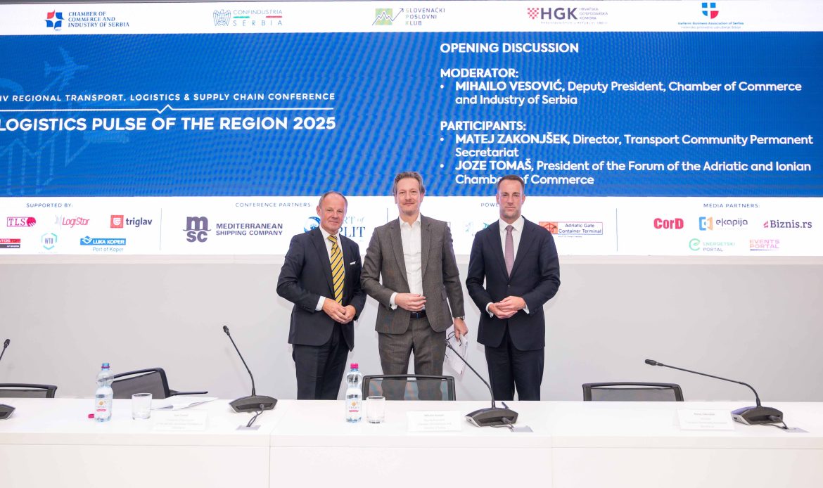 U uvodnoj diskusiji, u kojoj su učestvovali Matej Zakonjšek, direktor Stalnog sekretarijata Transportne zajednice, i Joze Tomaš, predsednik Foruma jadransko-jonskih privrednih komora, naglašeno je da je neophodno jačanje institucionalne saradnje, interoperabilnosti sistema i zajedničkog planiranja kao preduslova za izgradnju modernih i otpornih logističkih tokova u Jugoistočnoj Evropi.