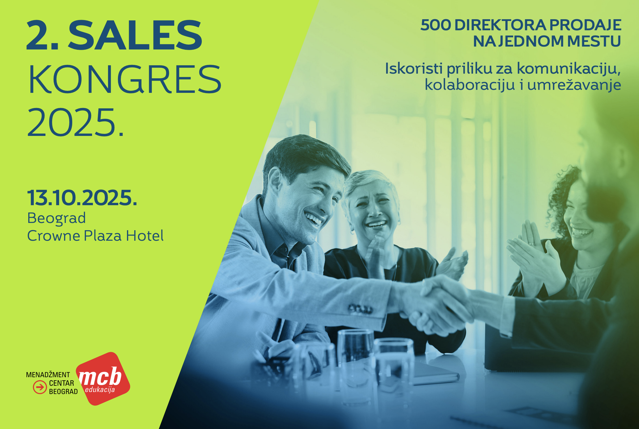 Menadžment Centar Beograd: Poziv na 2.Sales Kongres, 13.10.2025, Hotel Crowne Plaza Beograd