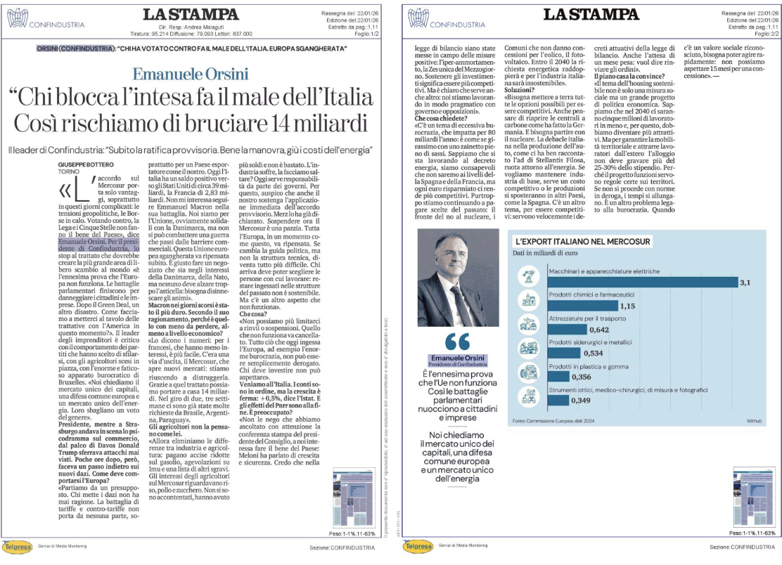 Condividiamo l’intervista del Presidente di Confindustria Italia Emanuele Orsini, che commenta quanto accaduto e richiama governi e istituzioni europee a un atto di responsabilità: dare attuazione all’accordo, nell’interesse dell’Europa e dell’Italia.